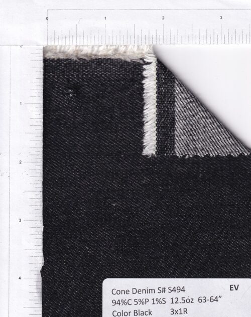 Cone S494 94%C 5%P 1%S 63-64" 12.5oz Black 1746 in stock Cone Mills Stretch Black Denim - J1