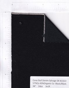 | Cone | J61712 | 93%C 7%Recycled-C | 33.5" | 12.5oz | Natural | 41 yards in Second Quality | Cone Mills Natural Selvedge Bull-Denim in First Quality + Second Quality ($13.75-1st + $9.75-2nd) | ||