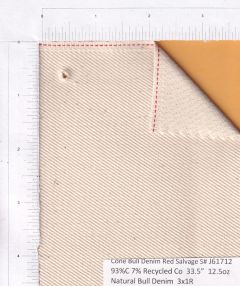 | Cone | J61711 | 93%C 7%Recycled-C | 35" | 12oz | Natural | 602 yards | Cone Mills Natural Selvedge Bull-Denim in First Quality ($13.75) | ||